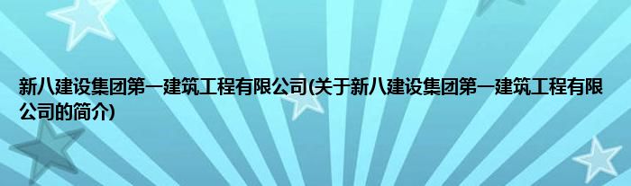 本文关于新八建设集团第一建筑工程有限公司的简介就讲解完毕,希望对大家有所帮助。