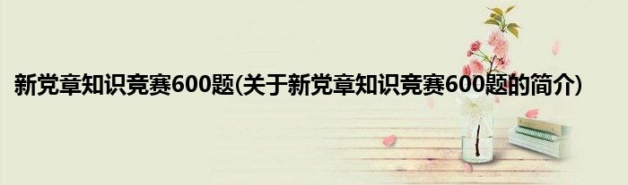 大家好,新党章知识竞赛600题,关于新党章知识竞赛600题的简介很多人还不知道,现在让我们一起来看看吧!