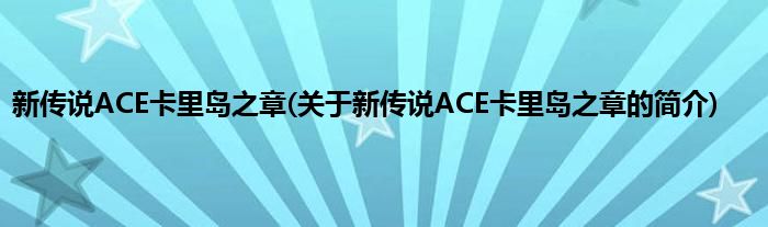 本文关于新传说ACE卡里岛之章的简介就讲解完毕,希望对大家有所帮助。