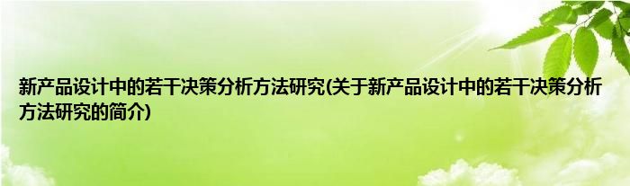 本文关于新产品设计中的若干决策分析方法研究的简介就讲解完毕,希望对大家有所帮助。
