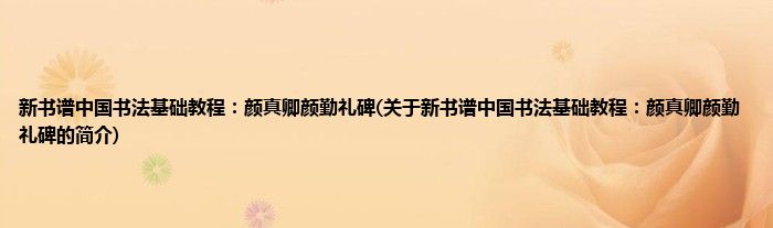 本文关于新书谱中国书法基础教程:颜真卿颜勤礼碑的简介就讲解完毕,希望对大家有所帮助。