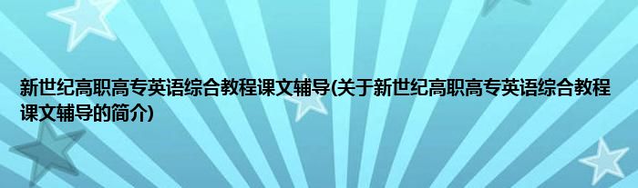 本文关于新世纪高职高专英语综合教程课文辅导的简介就讲解完毕,希望对大家有所帮助。