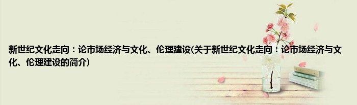 本文关于新世纪文化走向:论市场经济与文化、伦理建设的简介就讲解完毕,希望对大家有所帮助。