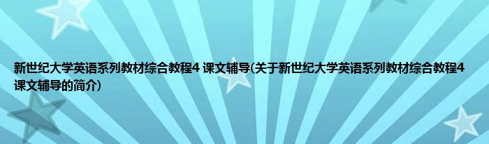 本文关于新世纪大学英语系列教材综合教程4 课文辅导的简介就讲解完毕,希望对大家有所帮助。