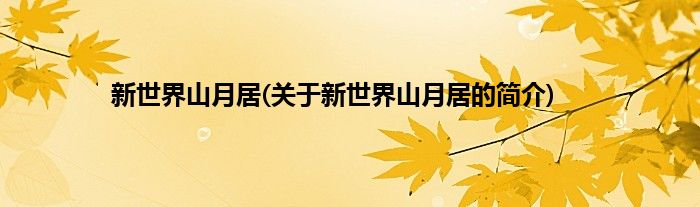大家好,新世界山月居,关于新世界山月居的简介很多人还不知道,现在让我们一起来看看吧!