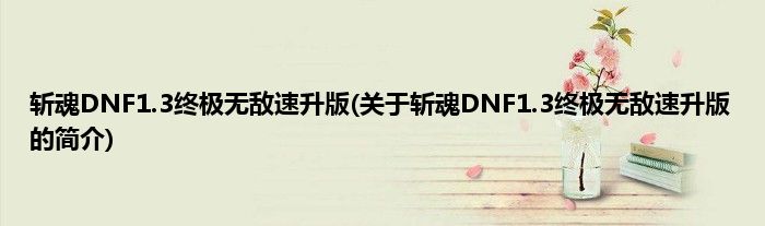 本文关于斩魂DNF1.3终极无敌速升版的简介就讲解完毕,希望对大家有所帮助。