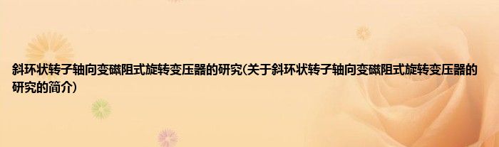 大家好,斜环状转子轴向变磁阻式旋转变压器的研究,关于斜环状转子轴向变磁阻式旋转变压器的研究的简介很多人还不知道,现在让我们一起来看看吧!