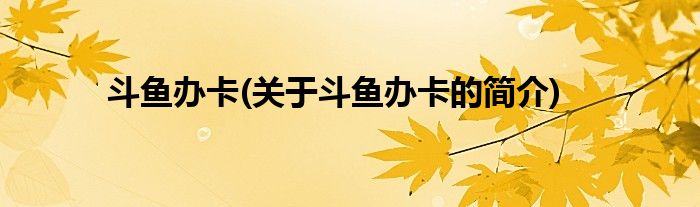 大家好,斗鱼办卡,关于斗鱼办卡的简介很多人还不知道,现在让我们一起来看看吧!