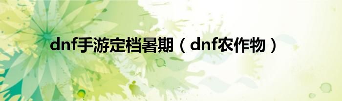 大家好,精选小编来为大家解答以上问题。dnf手游定档暑期,dnf农作物很多人还不知道,现在让我们一起来看看吧!