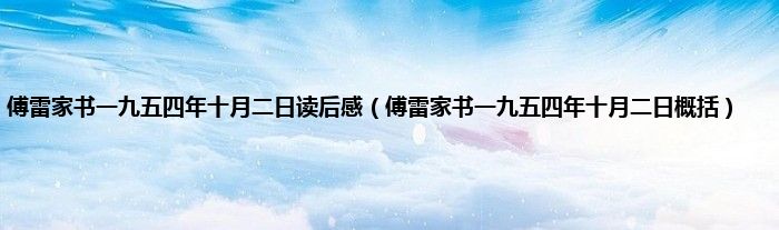 大家好,小常来为大家解答以上问题。傅雷家书一九五四年十月二日读后感,傅雷家书一九五四年十月二日概括很多人还不知道,现在让我们一起来看看吧!
