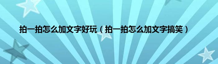 大家好,小常来为大家解答以上问题。拍一拍怎么加文字好玩,拍一拍怎么加文字搞笑很多人还不知道,现在让我们一起来看看吧!