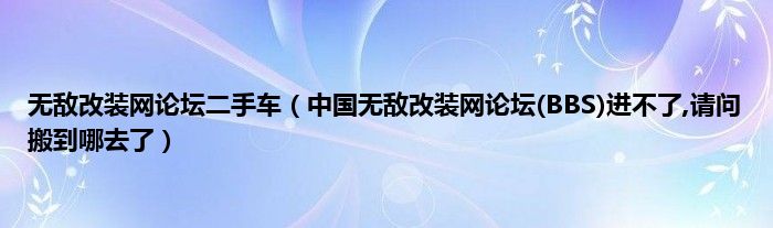 大家好,小常来为大家解答以上问题。无敌改装网论坛二手车,中国无敌改装网论坛(BBS)进不了,请问搬到哪去了很多人还不知道,现在让我们一起来看看吧!