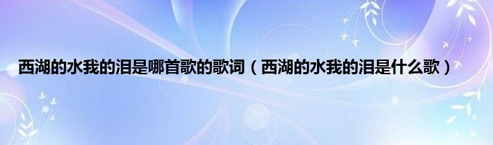 大家好,小常来为大家解答以上问题。西湖的水我的泪是哪首歌的歌词,西湖的水我的泪是什么歌很多人还不知道,现在让我们一起来看看吧!