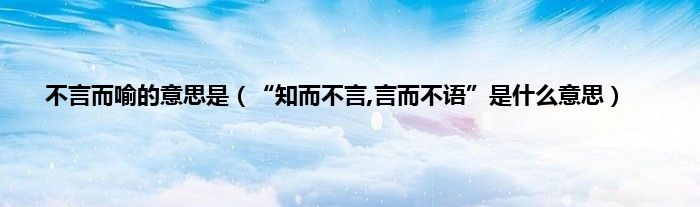 大家好,小常来为大家解答以上问题。不言而喻的意思是,“知而不言,言而不语”是什么意思很多人还不知道,现在让我们一起来看看吧!