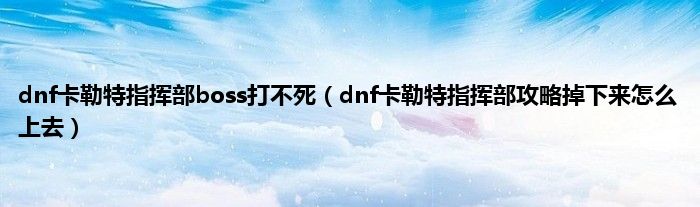 大家好,小常来为大家解答以上问题。dnf卡勒特指挥部boss打不死,dnf卡勒特指挥部攻略掉下来怎么上去很多人还不知道,现在让我们一起来看看吧!