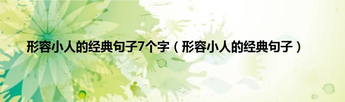 大家好,小常来为大家解答以上问题。形容小人的经典句子7个字,形容小人的经典句子很多人还不知道,现在让我们一起来看看吧!