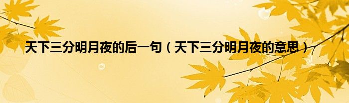 大家好,小常来为大家解答以上问题。天下三分明月夜的后一句,天下三分明月夜的意思很多人还不知道,现在让我们一起来看看吧!