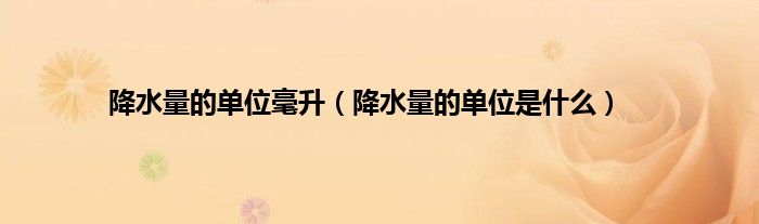 大家好,小科来为大家解答以上问题。降水量的单位毫升,降水量的单位是什么很多人还不知道,现在让我们一起来看看吧!