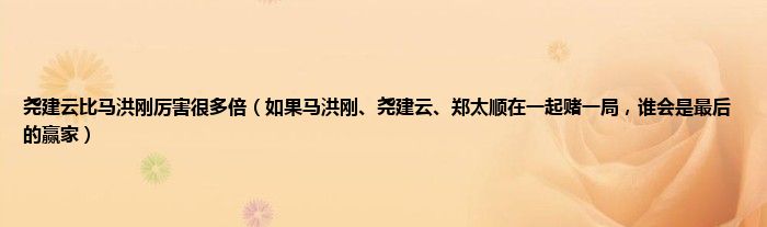 大家好,小常来为大家解答以上问题。尧建云比马洪刚厉害很多倍,如果马洪刚、尧建云、郑太顺在一起赌一局,谁会是最后的赢家很多人还不知道,现在让我们一起来看看吧!