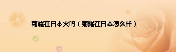 大家好,小常来为大家解答以上问题。菊耀在日本火吗,菊耀在日本怎么样很多人还不知道,现在让我们一起来看看吧!