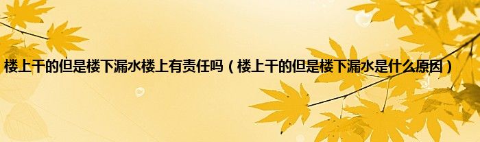 大家好,小常来为大家解答以上问题。楼上干的但是楼下漏水楼上有责任吗,楼上干的但是楼下漏水是什么原因很多人还不知道,现在让我们一起来看看吧!