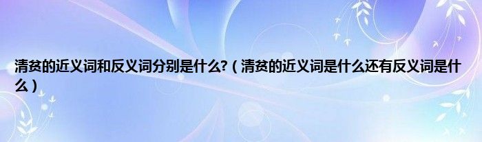大家好,小常来为大家解答以上问题。清贫的近义词和反义词分别是什么?,清贫的近义词是什么还有反义词是什么很多人还不知道,现在让我们一起来看看吧!