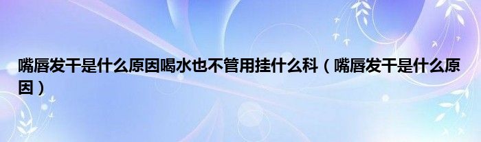 大家好,小科来为大家解答以上问题。嘴唇发干是什么原因喝水也不管用挂什么科,嘴唇发干是什么原因很多人还不知道,现在让我们一起来看看吧!