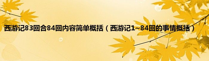 大家好,小常来为大家解答以上问题。西游记83回合84回内容简单概括,西游记1~84回的事情概括很多人还不知道,现在让我们一起来看看吧!