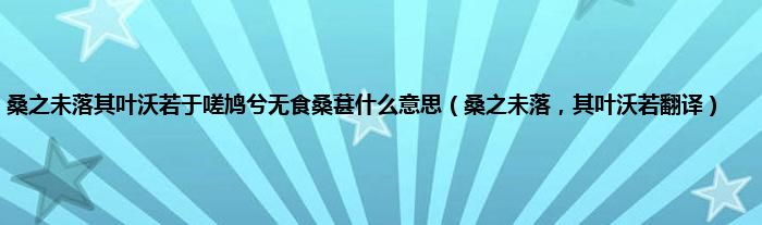 大家好,小常来为大家解答以上问题。桑之未落其叶沃若于嗟鸠兮无食桑葚什么意思,桑之未落,其叶沃若翻译很多人还不知道,现在让我们一起来看看吧!