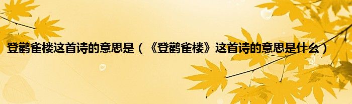 大家好,小常来为大家解答以上问题。登鹳雀楼这首诗的意思是,《登鹳雀楼》这首诗的意思是什么很多人还不知道,现在让我们一起来看看吧!