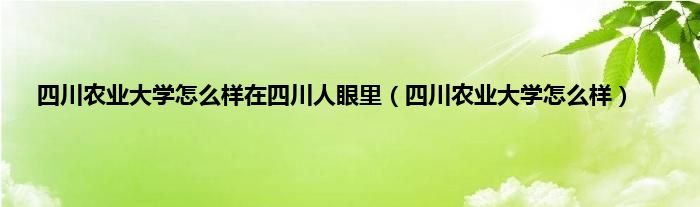 大家好,小常来为大家解答以上问题。四川农业大学怎么样在四川人眼里,四川农业大学怎么样很多人还不知道,现在让我们一起来看看吧!
