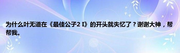 大家好,小常来为大家解答以上问题。为什么叶无道在《最佳公子2 I》的开头就失忆了?谢谢大神,帮帮我。很多人还不知道,现在让我们一起来看看吧!