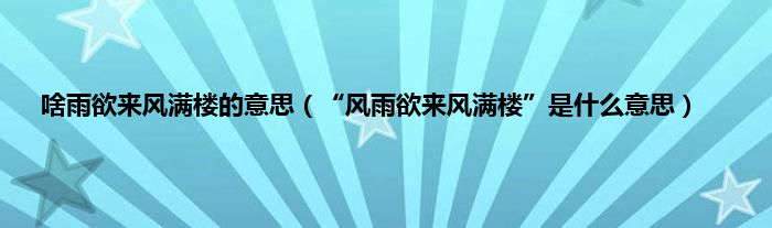 大家好,小常来为大家解答以上问题。啥雨欲来风满楼的意思,“风雨欲来风满楼”是什么意思很多人还不知道,现在让我们一起来看看吧!