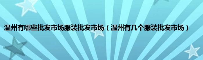 大家好,小常来为大家解答以上问题。温州有哪些批发市场服装批发市场,温州有几个服装批发市场很多人还不知道,现在让我们一起来看看吧!