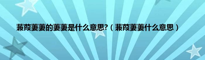 蒹葭萋萋的萋萋是什么意思?(蒹葭萋萋什么意思)