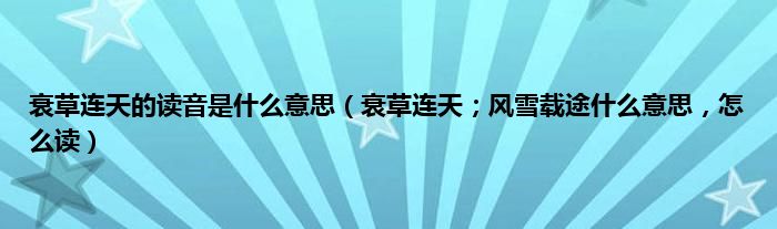 大家好,小常来为大家解答以上问题。衰草连天的读音是什么意思,衰草连天;风雪载途什么意思,怎么读很多人还不知道,现在让我们一起来看看吧!