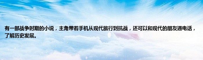 大家好,小常来为大家解答以上问题。有一部战争时期的小说,主角带着手机从现代旅行到抗战,还可以和现代的朋友通电话,了解历史发展。很多人还不知道,现在让我们一起来看看吧!