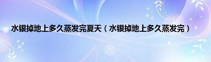 大家好,小常来为大家解答以上问题。水银掉地上多久蒸发完夏天,水银掉地上多久蒸发完很多人还不知道,现在让我们一起来看看吧!