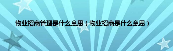 物业招商的意思就是商业或工业园地产招租,这里所说的物业是指地产,房产。而不是大家所说的物业公司