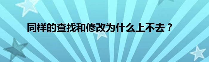 大家好,小常来为大家解答以上问题。同样的查找和修改为什么上不去?很多人还不知道,现在让我们一起来看看吧!