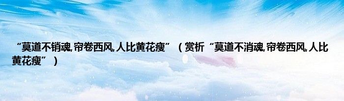 以花木之“瘦”,比人之瘦,诗词中不乏类似的句子,这是因为正是“莫道不消魂,帘卷西风,人比黄花瘦”这三句,才共同创造出一个凄清寂寥的深秋怀人的境界。“莫道不消魂”,直承“东篱把酒”以“人拟黄花”的比喻,与全词的整体形象相结合。“帘卷西风”一句,更直接为“人比黄花瘦”句作环境气氛的渲染,使人想象出一幅画面:重阳佳节佳人独对西风中的瘦菊。有了时令与环境气氛的烘托,“人比黄花瘦”才有了更深厚的寄托,此句也才能为千古传诵的佳句。