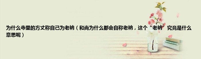大家好,小常来为大家解答以上问题。为什么寺里的方丈称自己为老衲,和尚为什么都会自称老衲,这个“老衲”究竟是什么意思呢很多人还不知道,现在让我们一起来看看吧!