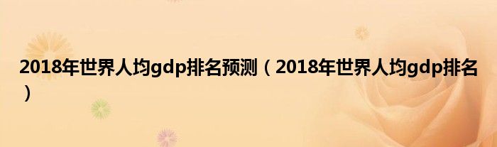 大家好,小常来为大家解答以上问题。2018年世界人均gdp排名预测,2018年世界人均gdp排名很多人还不知道,现在让我们一起来看看吧!
