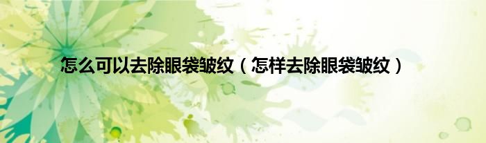 大家好,小科来为大家解答以上问题。怎么可以去除眼袋皱纹,怎样去除眼袋皱纹很多人还不知道,现在让我们一起来看看吧!