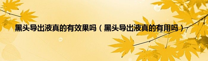 1、黑头导出液真的有用,但是想要彻底解决黑头的问题,还必须要在使用完黑头导出液后做好皮肤的护理,只有两者相结合才会有好的效果。黑头导出液的原理和去角质产品差不多,黑头导出液通过软化黑头来导出黑头,有清洁黑头的作用。