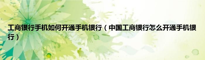 工商银行手机如何开通手机银行(中国工商银行怎么开通手机银行)