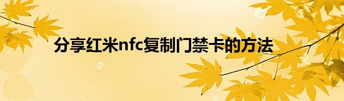 现在大家使用手机的频率越来越频繁,手机也为我们提供了许多的便利,今天小编也来说一下这个分享红米nfc复制门禁卡的方法相关的文章,这个操作其实不复杂,接下来就给大家介绍一下分享红米nfc复制门禁卡的方法,一起来看看吧: