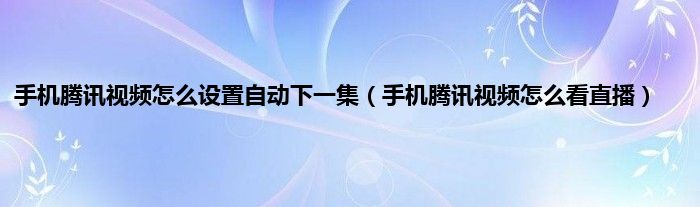 手机腾讯视频怎么设置自动下一集(手机腾讯视频怎么看直播)