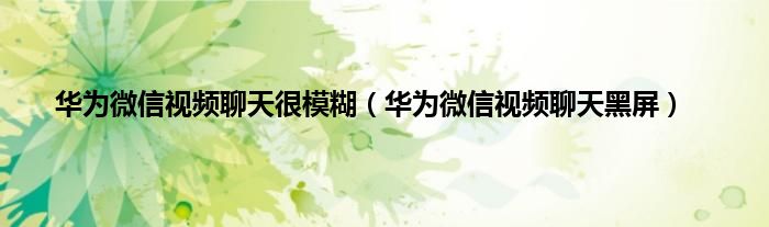 华为微信视频聊天很模糊(华为微信视频聊天黑屏)