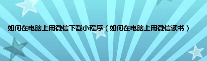 大家好,小常来为大家解答以上问题。如何在电脑上用微信下载小程序,如何在电脑上用微信读书很多人还不知道,现在让我们一起来看看吧!
